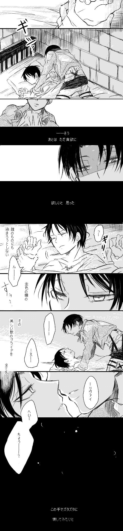 「地下牢でエレンが寝ているベッドに腰掛けて会話している兵長・鬼畜兵長にいじめられるエレン」